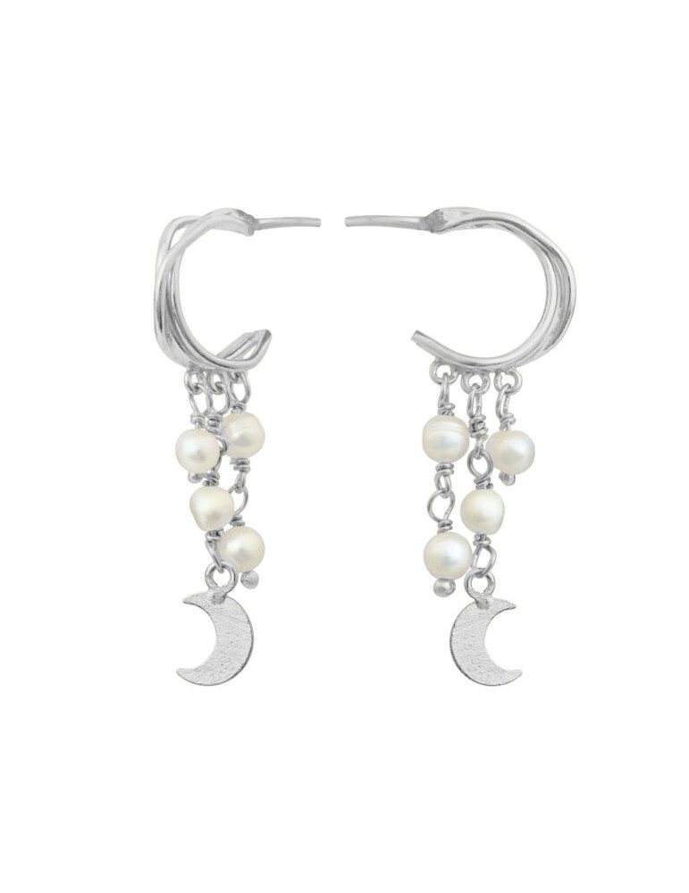Super fine øreringe i sølv, med kæde og ferskvandsperler - samlet under en fin creol