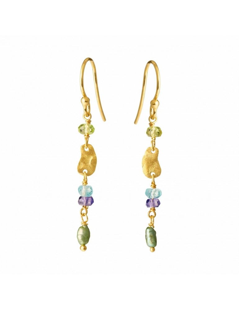 Fin sølv forgyldt ørehænger med iolit, ferskvandsperler, apatit og peridot