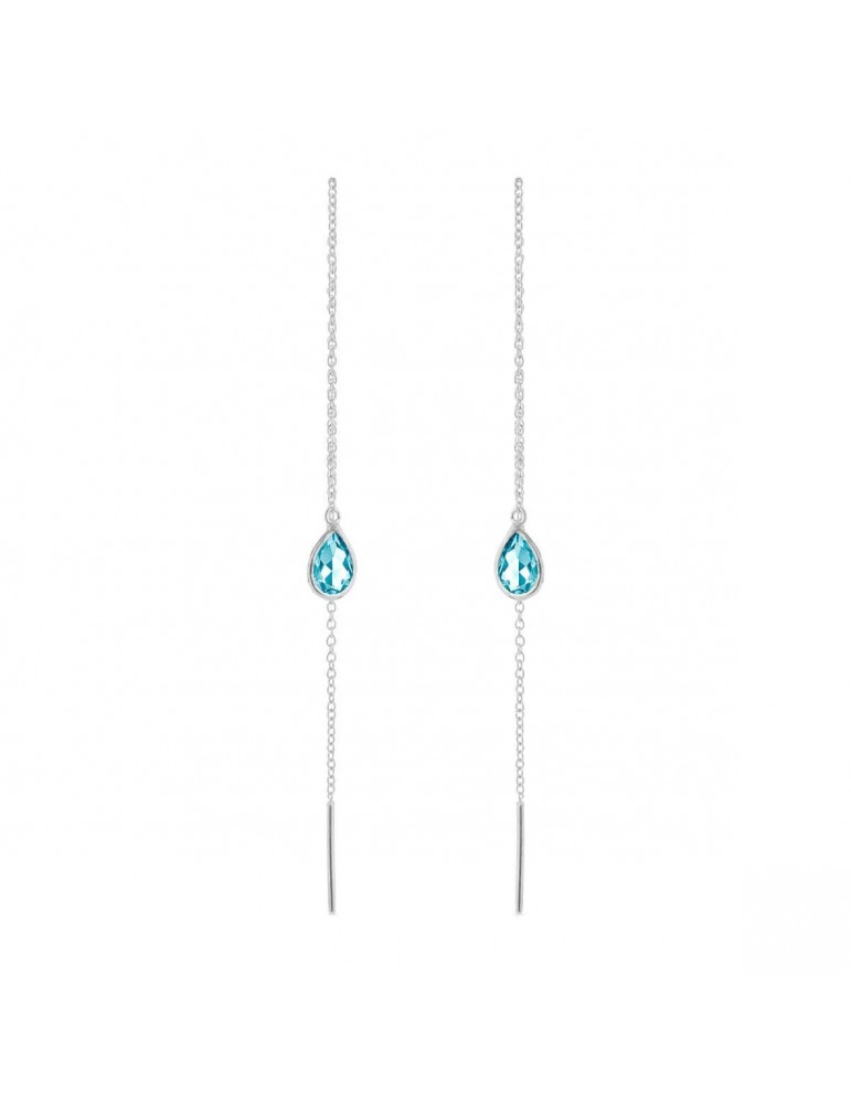 Enkelt og fin ørekæde i sølv med mini dråbe facet syntetisk blå topas