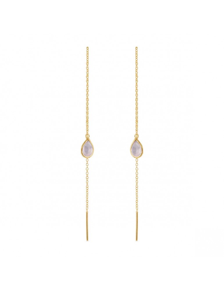Enkelt og fin ørekæde i forgyldt sølv med mini dråbe i facet / lyserød krystal