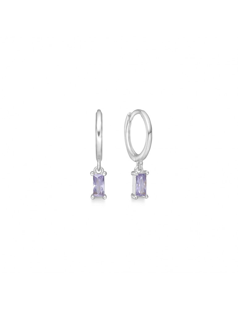 Studio Z - sølv creol med rektangel lys lilla zirkonia.