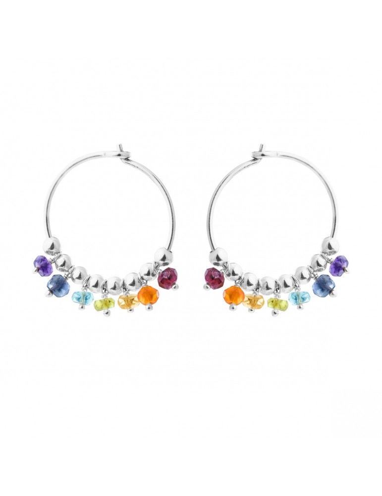 Susanne Friis Bjørner - Sølv ørering med en skøn blanding af granat, karneol, citrin, peridot, iolit og ametyst.
