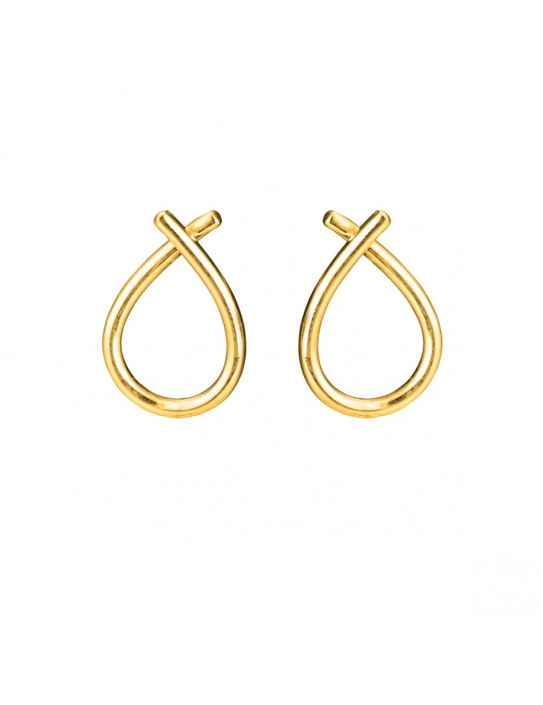 Susanne Friis Bjørner - Sølv forgyldt ørering blank dråbe der krydser.