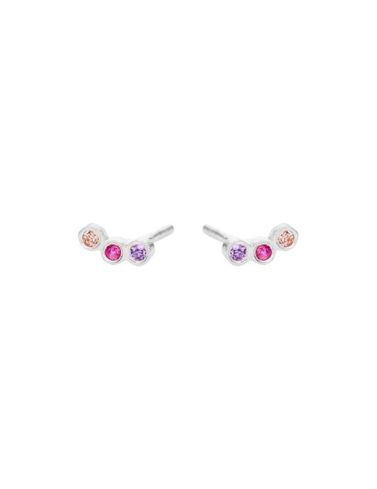 Susanne Friis Bjørner - Sølv ørestik med 3 små zirkonia i lyserøde nuancer.